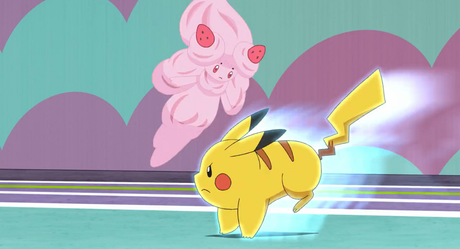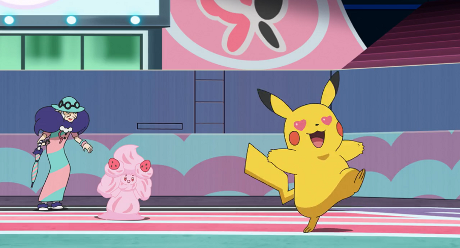 Pikachu legt sofort entschlossen los und attackiert mit seinem Ruckzuckhieb und schnellen Eisenschweif-Angriffen in Folge. Allerdings kann Pokusan aufgrund seines Körpers aus Sahne die Angriffe gut überstehen. Das Fee-Pokémon kontert anschließend mit Anziehung und greift das so abgelenkte Pikachu mit Zauberschein an. Durch den Treffer kann sich Pikachu allerdings wieder fangen und den nächsten Zauberschein-Angriff mit Elektronetz abwehren.