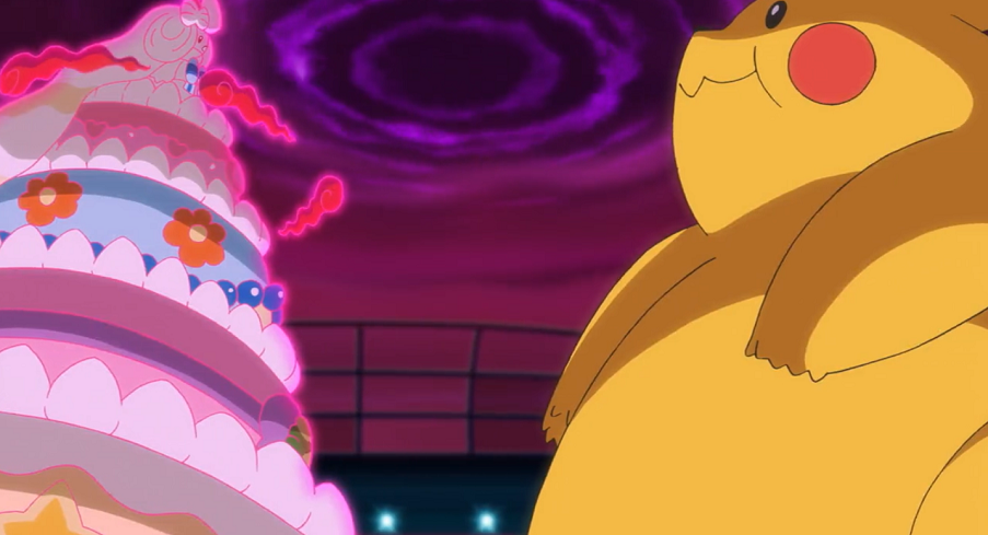 Papella ruft ihr Pokusan nun zurück, um dann den Pokéball mit Hilfe ihres Dynamax-Bandes zu vergrößern und Gigadynamax-Pokusan zurück in den Kampf zu schicken. Sofort setzt es Giga-Lichtblick ein, wodurch Sahne vom Himmel auf Pikachu herabfällt. Zuerst scheint Pikachu geschlagen, doch auf einmal beginnt auch dieses zu Papellas großem Erstaunen zu wachsen und scheint ebenfalls seine Gigadynamax-Form anzunehmen. Genüsslich verspeist es die restliche herabfallende Sahne. Als Ash es allerdings anweist, Giga-Blitzhagel einzusetzen, tut sich nichts. Delion begreift die Situation und erklärt, dass Pikachu nicht gigadynamaximiert, sondern lediglich durch die äußerst kalorienhaltige Sahne so dick geworden und gewachsen sei. Papella beendet daraufhin den Kampf.