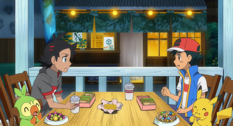 Beim Mittagessen lässt Ash und Goh das Thema nicht los. Die beiden unterhalten sich über das Pokémon, das Tiara gesehen habe und möglicherweise für die andauernde Nacht verantwortlich sein könnte. Goh kommt plötzlich eine Idee, die er nach einem Blick auf die Karte in seinem Smart-Rotom bestätigt sieht: in der Nähe befindet sich demnach eine Ausgrabungsstätte. Goh will nun seiner Spur nachgehen, weshalb beide zum Archäologiemuseum der Stadt eilen.