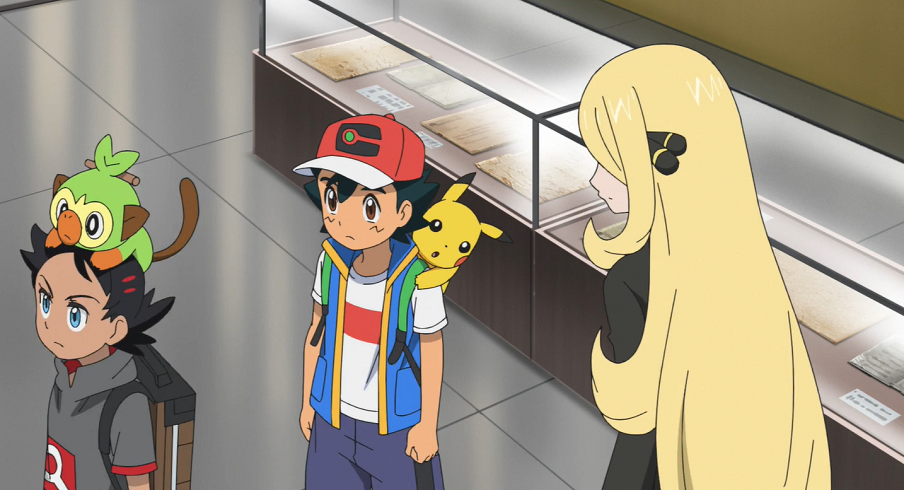 Im Museum macht sich Goh auf die Suche. Ashs Pikachu riecht derweil etwas Bekanntes und springt daraufhin in eine Menge von Museumsbesucher und dort direkt in die Arme von Cynthia. Pikachu freut sich sehr, Cynthia wiederzusehen. Auch Cynthia ist sehr darüber erfreut, auf Pikachu und Ash zu treffen. Sie erklärt, dass sie gehört habe, dass er an den Weltmeisterschaften teilnehme. Entschlossen erklärt Ash daraufhin, dass er vorhabe, eines Tages wie sie in die Top 8 zu kommen. Goh ist ebenfalls begeistert, Cynthia einmal treffen zu können und stellt sich ihr vor. Cynthia erklärt auf seine Nachfrage, dass Archäologie ihre Leidenschaft sei und sie für Nachforschungen an diesem Ort sei. Ash und Goh wiederum berichten Cynthia von dem Phänomen der dauerhaften Nacht in der Stadt, dem sie auf der Spur seien. Goh hat nun auch gefunden, was er im Museum gesucht hat: an einer Wand hängt eine Abbildung mit allen 28 Formen von Icognito. Er vermutet, dass Tiara ein Icognito I gesehen habe, was am besten zu ihrer Beschreibung passen würde. Gohs Pokédex zufolge, den sie daraufhin zu Rate ziehen, können zwei oder mehr Icognito eine eigentümliche Kraft auslösen. Cynthia, die sich ebenfalls mit Icognito beschäftigt, informiert sie darüber, dass Icognito zwar häufig in der Nähe von Ruinen zu finden, darüber hinaus jedoch noch ein großes Mysterium seien. Sie bittet Ash und Goh, sie komplett über die Geschehnisse zu informieren.