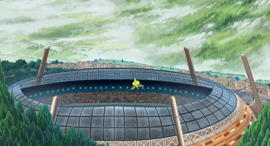 Ash, Connie, Delion, Goh, Lilia, Roy, Saida, Stadionsprecher, Zuschauer
