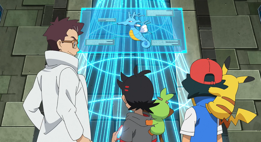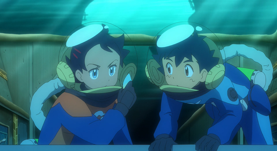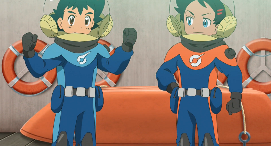 Während Dragan mit seinem Detektor auf dem Meeresboden nach einem antiken U-Boot sucht und dabei mit Luft über einen Schlauch vom Schiff aus versorgt wird, halten Ash und Goh die Stellung und sind mit ihm über Funk verbunden. Letzterem kommt die Idee, die Suche mit Ashs Lucario und seinem Lampi zu unterstützen. Wie bei einem Radar soll Lampi Ultraschallwellen ins Wasser aussenden, während Lucario versucht, die reflektierten Echos der Signale zu empfangen und zu deuten, in der Hoffnung, so etwas zu finden.