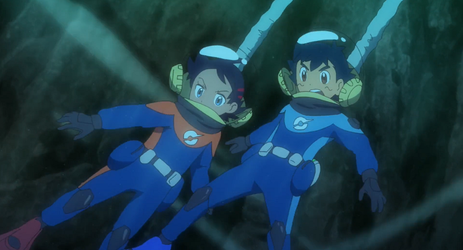 Es vergeht einige Zeit und die Sonne ist bereits am Untergehen, als Lucario einen Erfolg meldet. Dragan, der eigentlich schon aufhören wollte, wird schnell von Ash und Goh informiert. Tatsächlich sucht er auf deren Anweisung hin noch etwas weiter und kann schließlich einen Meeresgraben finden, in dem sich das gesuchte antike U-Boot findet. Dieses erinnere, so berichtet er über Funk, von der Form her an Seedraking. Da es bereits dunkel werde, sei es zu gefährlich, weiterzusuchen. Daher will er am kommenden Tag weitermachen.