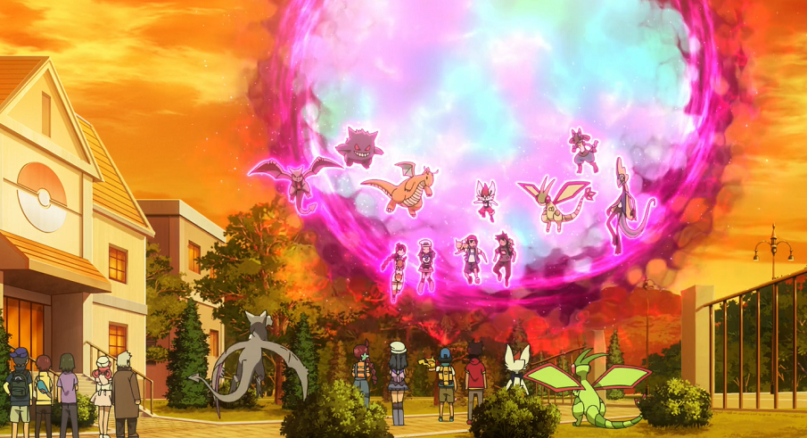 Durch einen plötzlichen, erneuten Energieaustritt Dialgas werden Panferno und Pichu genauso wie sämtliche andere Pokémon in Eier zurückverwandelt. Darüber hinaus werden die Schutzanzüge aller zerstört und Team Rocket durch die Wucht durch das Tor von diesem Ort geschleudert. Ebenso werden die verbleibenden Ash, Goh, Chloe und Lucia sowie ihre Versionen aus der anderen Welt um einige Jahre verjüngt.