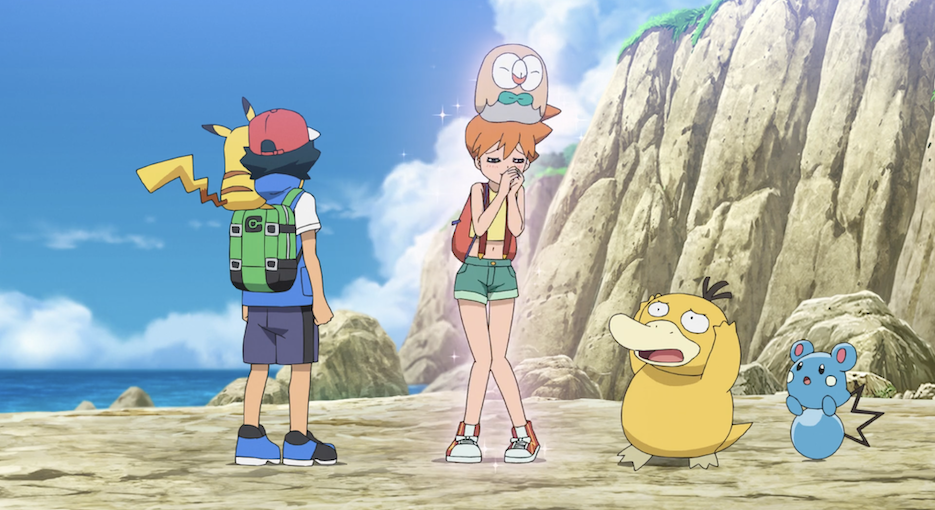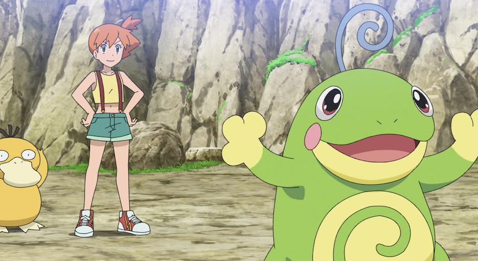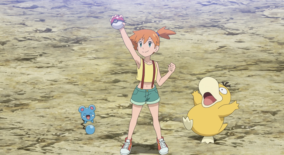 Ash und Pikachu freuen sich sehr, Misty und ihre Pokémon wiederzusehen. Auch Misty sowie ihr Enton und Azurill sind sehr glücklich darüber. Während die Pokémon miteinander spielen, macht es sich Bauz auf Mistys Kopf bequem. Misty gratuliert Ash zu seinem Titelgewinn und erzählt, dass sie seinen Kampf gegen Delion im Fernsehen gesehen und dieser sie so begeistert habe, dass sie entschieden habe, die Arena in Azuria City wieder ihren Schwestern zu überlassen und erneut auf Reisen zu gehen. Krebscorps scheint derweil immer noch unbedingt gegen das Scampisto kämpfen zu wollen. Misty betont noch einmal, dass sie das Wasser-Pokémon fangen wolle, da sie mit diesem schicksalhaft verbunden sei, nachdem sie dem Scampisto bereits mehrmals mithilfe ihres Misty-Angelköders begegnet sei. Allerdings habe sie es bisher nie fangen können. Sie beginnt regelrecht für das Scampisto zu schwärmen. Ash widerspricht ihr jedoch und beansprucht das Scampisto aufgrund seines Krebscorps für sich, da durch deren Kampf zwischen den beiden eine Freundschaft entwickelt habe.