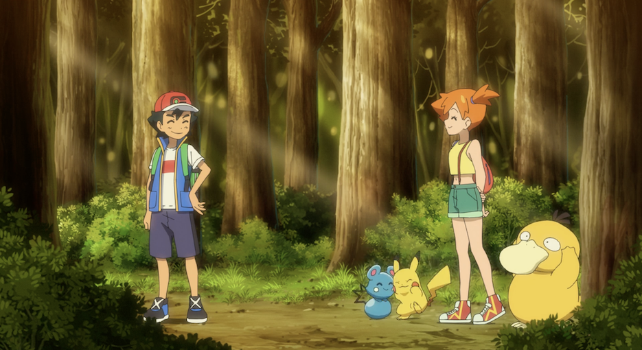 Als Ash und Pikachu ihre Reise durch einen Wald fortsetzen, dämmert es bereits. Beide bemerken Misty, die versucht, ihnen unbemerkt zu folgen. Auf Ashs Frage, weshalb sie ihm hinterherlaufe, verweist sie auf Krebscorps und Scampisto, die sich gut verstünden. Daher würde sie gerne mitkommen. Ash zeigt sich zunächst wenig begeistert und möchte mit Pikachu weitergehen, doch als Pikachu sich an Mistys Bein schmiegt, sieht er ein, dass er keine Wahl hat. So machen sich Ash und Misty wieder gemeinsam auf die weitere Reise.