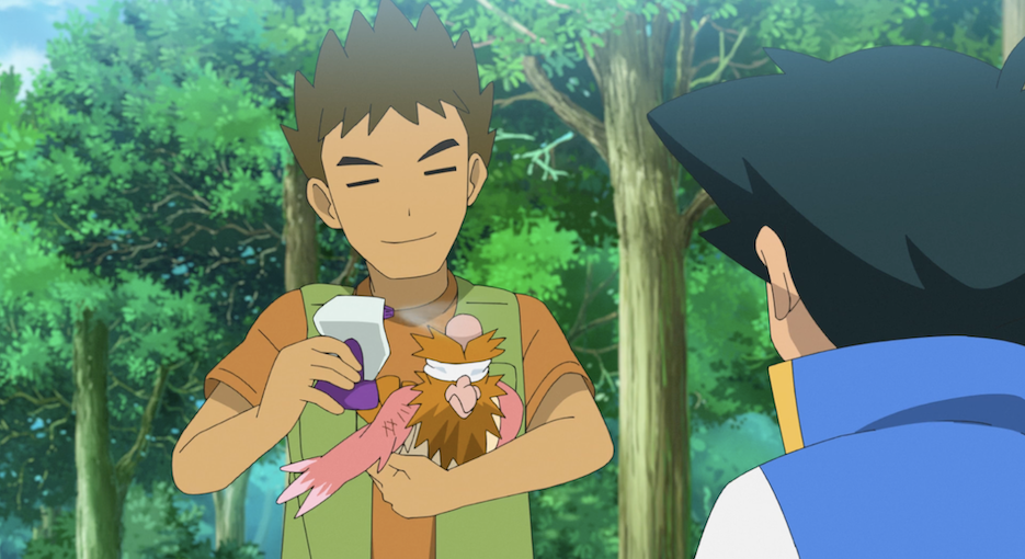 Auch Rocko hat Jonagobeeren gesammelt und wirft eine Ash zu, der unbedingt die Suche nach Pikachu fortsetzen möchte.