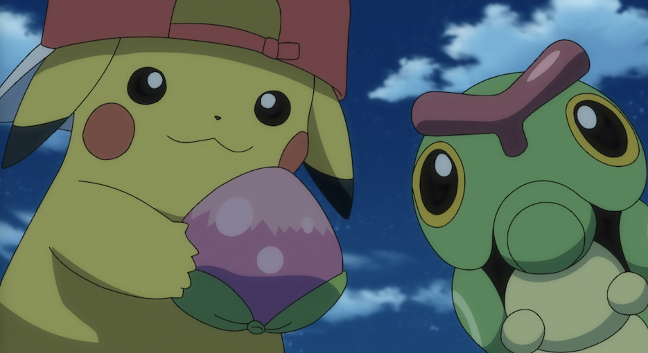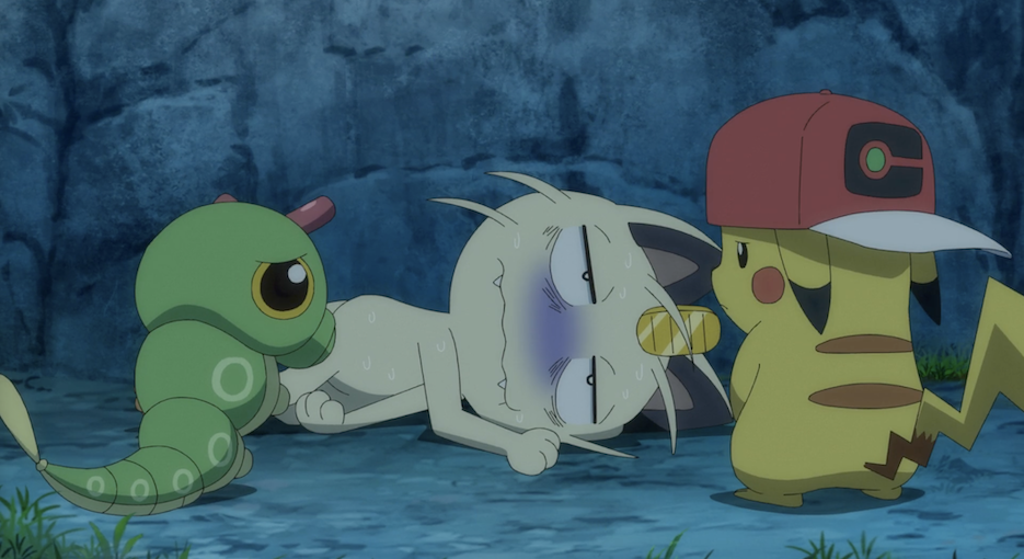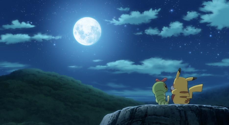 Pikachu und Raupy haben mit Myraplas Hilfe eine Pirsifbeere gefunden, mit der sie Mauzis Vergiftung schließlich heilen können. Mauzi ist sehr dankbar und legt sich daraufhin direkt schlafen. Als der helle Mond hinter den Wolken auftaucht, blickt Pikachu im Beisein von Raupy auf diesen. Dabei denkt Pikachu an Ash.