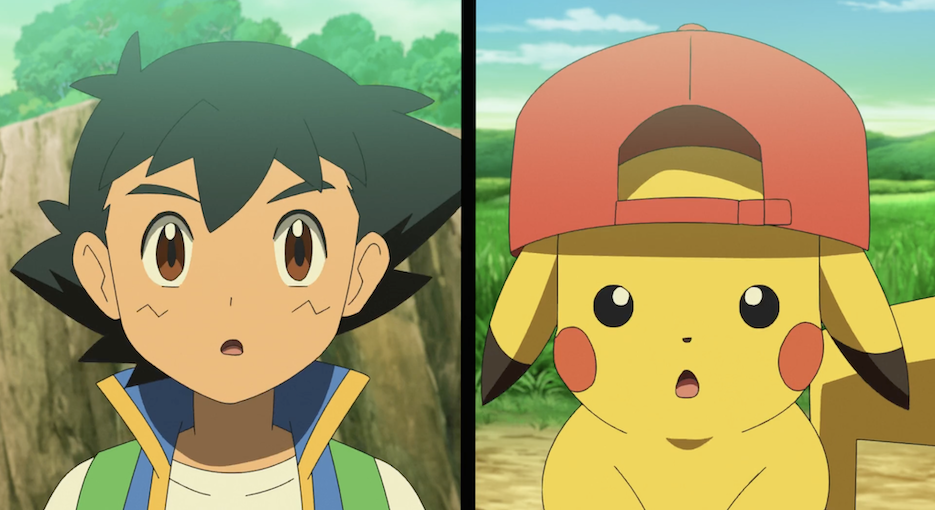 Ash und Pikachu brechen jeweils ihre Beere genau im selben Moment in zwei Stücke. Dies spüren beide, weshalb sie von ihrem Gefühl geleitet beginnen, aufeinander zuzurennen. Schließlich fallen sich beide in die Arme, wobei Pikachu Ash vor Freude schockt. Dabei landet auch Ashs Mütze wieder auf dessen Kopf. Er bedankt sich bei Pikachu auch für seine Mütze. Es dauert einen Moment, bis beide realisieren, dass sie sich direkt über einer Schlucht in die Arme gefallen sind, weshalb sie nun in die Tiefe stürzen. Bevor sie jedoch in dem Fluss landen, greift plötzlich Latias ein, auf deren Rücken sie landen und die sie unversehrt zurück nach oben fliegt. Da Latias unsichtbar ist, kann Ash sich die Rettung nicht erklären, ist aber glücklich, Pikachu wieder bei sich zu haben. Misty und Rocko sind ebenfalls sehr froh.