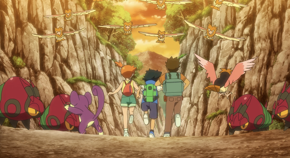 Tatsächlich hat sich auch Ash, gefolgt von Misty und Rocko, zielsicher auf den Weg zu Pikachu gemacht. Auf Mistys Nachfrage hin erklärt er, dass spüre, dass Pikachu denselben Weg nehme.