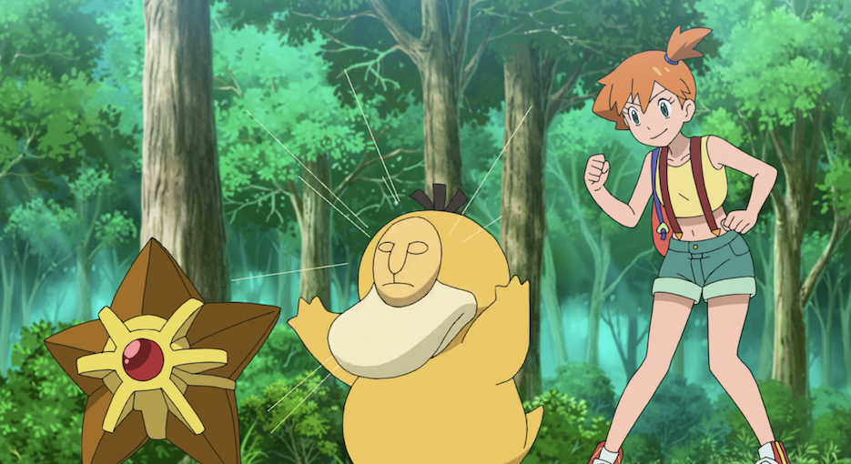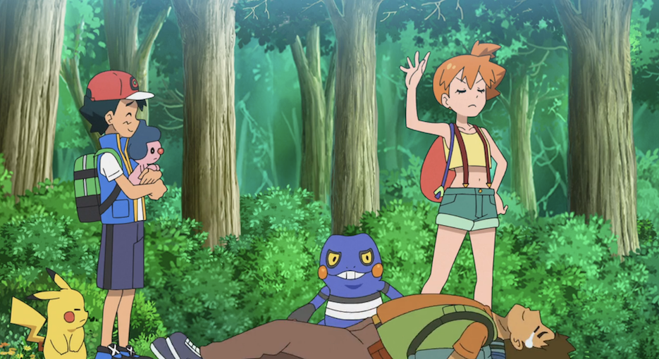 Ash und Misty stimmen zu und gehen gemeinsam mit Pantimimi weiter, während Rockos Kappalores die beiden gegnerischen Pokémon mit seinem Tanz ansteckt und in Schach halten kann.