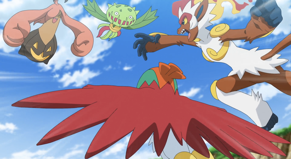 Es dauert nicht lange, bis Ash und Pikachu mit Pantimimi auf Venuflibis und Pumpdjinn treffen. Venuflibis versucht, sich Pikachu mit Rankenhieb zu schnappen. Ash reagiert schnell und setzt Panferno ein, das Pikachu mit Tempohieb befreien kann. Er trägt Pikachu auf, sich gemeinsam mit Pantimimi zum vermeintlichen Treffpunkt zu begeben, während er sich um Pumpdjinn und Venuflibis kümmern will. Dazu schickt er noch zusätzlich sein Resladero in den Kampf. Entschlossen geht Pikachu mit Pantimimi weiter.
