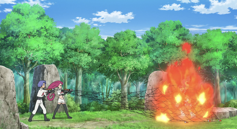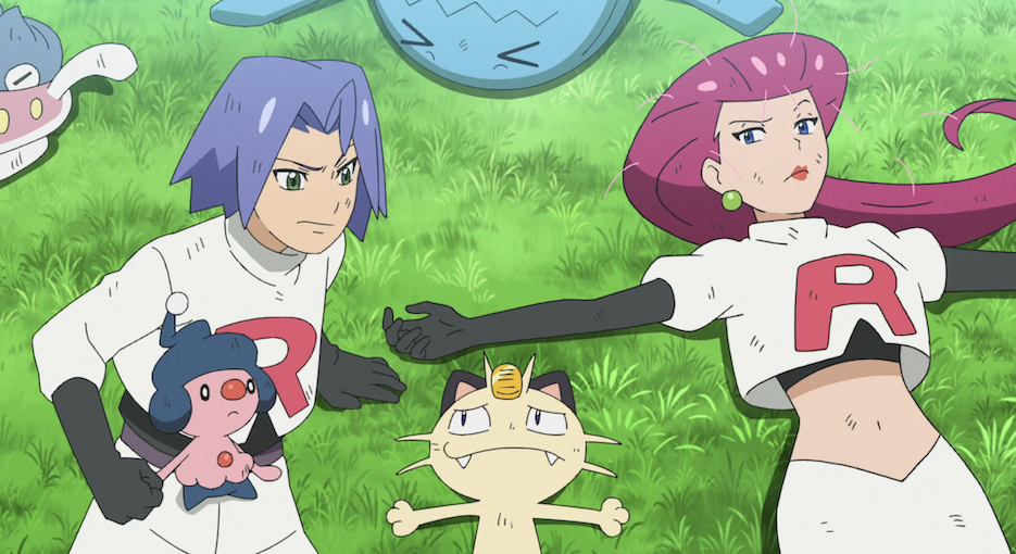 Jessie, James und Mauzi sind mit ihren Pokémon auf einer Wiese gelandet. Die drei hinterfragen, was an ihrem Plan falsch gelaufen ist, und beginnen dabei schnell, sich gegenseitig die Schuld am Scheitern zu geben. Schließlich erklären sie, miteinander fertig zu sein und gehen, traurig beobachtet von ihren Pokémon, davon und getrennte Wege.