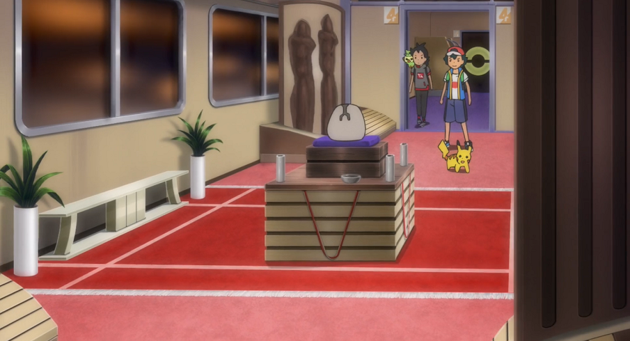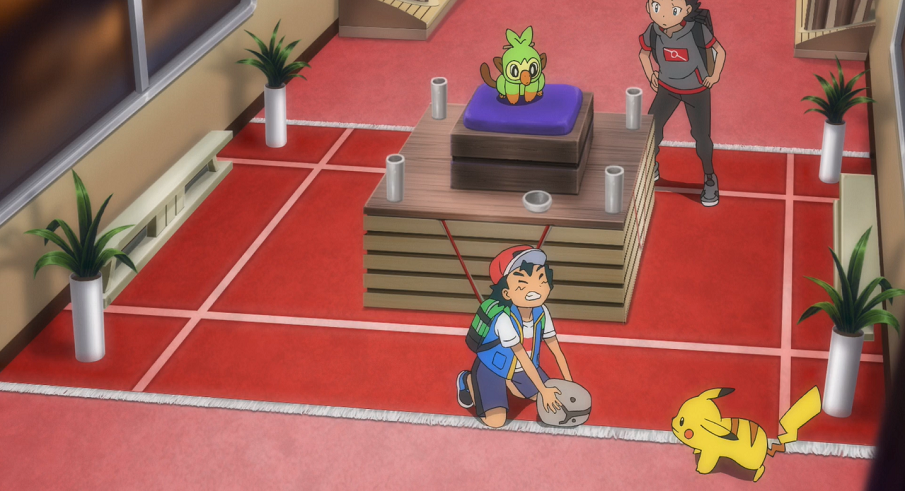 Gohs Absol und Kryppuk liefern sich einen harten Kampf. Jedoch findet Goh kein richtiges Mittel, um Kryppuk wirklich zu schaden. Gerade als Absol einem weiteren Spukball Kryppuks in der Luft nicht mehr ausweichen kann, taucht Ashs Gengar, den Geist in der Hand haltend, auf, das den Spukball abfängt und Absol mit seiner Psychokinese-Attacke in der Luft auffängt. Goh ist sehr froh, als er plötzlich Ash an seiner Seite bemerkt. Ash erklärt Goh, dass dieser ihm einen Moment verschaffen soll, in dem Kryppuk sich nicht bewegt, damit Gengar den Geist zurückbringen kann.