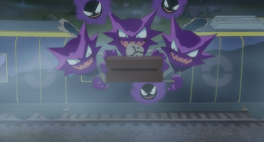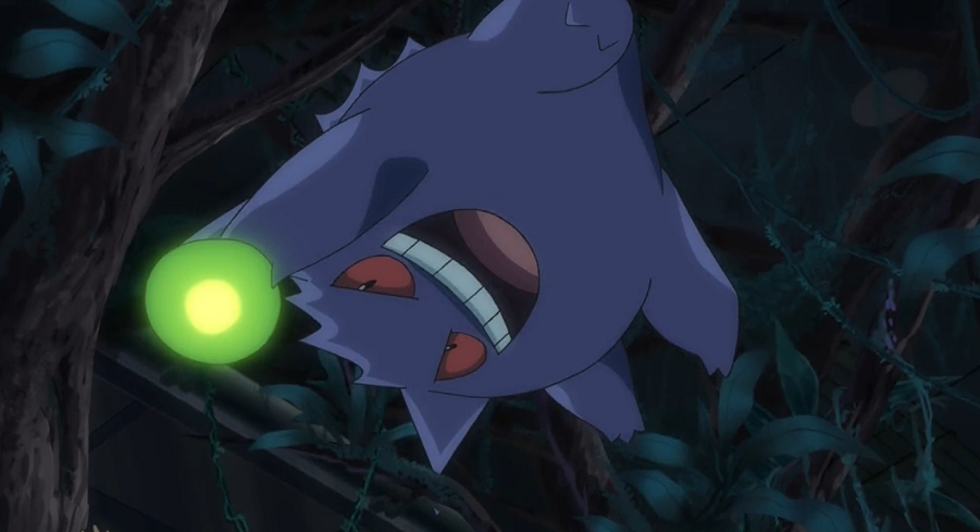 Ash hat sich wieder beruhigt, scheint aber noch immer von dem Geist kontrolliert zu werden. Der Junge jedoch gibt die Hoffnung nicht auf, dass sein Ansatz wirken könnte. Und tatsächlich: Kurz darauf verlässt das kugelrunde grünliche Licht Ashs Körper, woraufhin dieser wieder vollkommen normal wird. Der Geist schwirrt kurz durch die Luft und verschwindet schnell im Schatten von Ash. Der will sich das Spiel nicht bieten lassen und ruft Gengar aus dessen Pokéball, das schließlich ebenfalls in Ashs Schatten verschwindet und dort den Geist fangen kann. Der Junge weist sie an, den Geist sofort zu Kryppuk zu bringen.