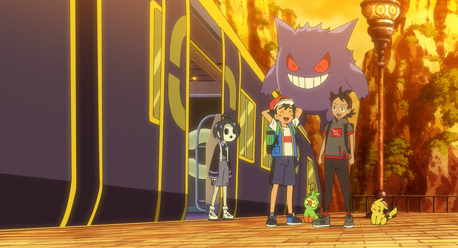 Ash und Goh sind mit dem Zug in der Galar-Region unterwegs. Um ihren Zielort Passbeck zu erreichen, müssen sie am Bahnhof von Score City den Zug wechseln. Sie verlassen, um umzusteigen, den Zug. Dabei rempelt Ash auf dem Bahnsteig beim Rückwärtslaufen versehentlich einen Jungen an, der eine merkwürdige Maske trägt (Anmerkung: Es handelt sich um Nio, den Arenaleiter von Passbeck). Ash entschuldigt sich bei ihm, doch der Junge geht ohne etwas zu sagen weiter. Als Ash bemerkt, dass der Junge beim Zusammenstoß sein Ticket auf dem Bahnsteig hat fallen lassen, möchte er ihn darauf aufmerksam machen und es ihm wiedergeben. Doch der Junge reagiert nicht auf Ashs Rufe und scheint fast schon davonzurennen. Ash und Goh folgen ihm durch den Bahnhofsuntergrund und stehen schließlich vor einer Tür, auf der eine große 0 steht und die zu einem im dichten Nebel gelegenen Gleis führt. Dort steht bereits ein Zug zur Abfahrt bereit. Ash und Goh können den Jungen nirgendwo finden. Als die Gleisdurchsage ankündigt, dass der sogenannte Geisterzug nach Passbeck fahre und nun starte, steigen Ash und Goh hastig in diesen ein, um so an ihr Reiseziel zu kommen. Gemeinsam mit den beiden fährt der Zug ab.