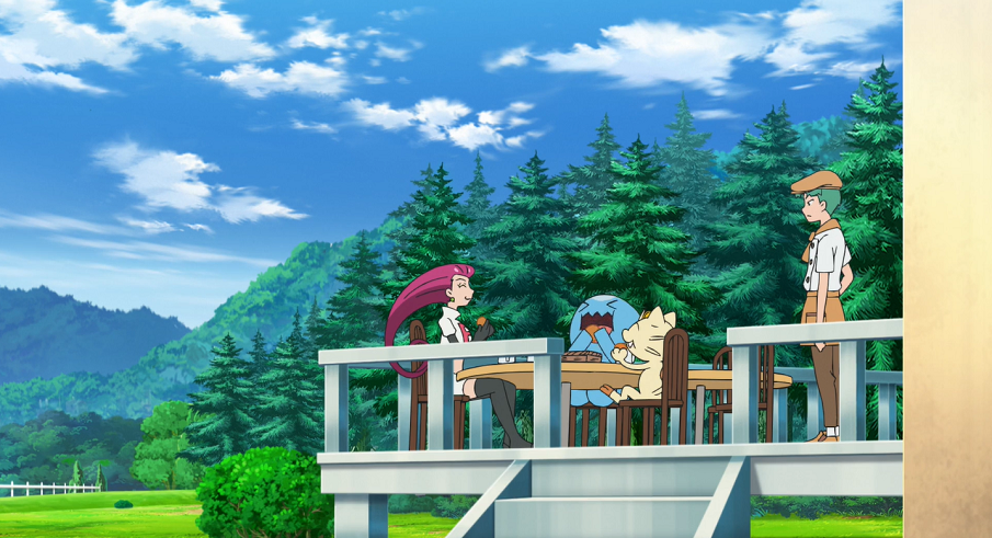 Als Jessie, Mauzi und Woingenau nach getaner Arbeit draußen eine Pause machen, sehen sie wieder Pelipper, das sie daran erinnert, weshalb sie eigentlich hier sind. Mauzi zögert allerdings. Jessie hat bemerkt, wie glücklich Mauzi an diesem Ort gemeinsam mit dem weiblichen Mauzi gewesen sei. Unter Tränen rennen Jessie und Woingenau davon. Mauzi wirft ihnen noch ein kleines Woingenau hinterher, das in der Luft zu einem großen Woingenau-Ballon aufgeht. In diesem können Jessie und Woingenau die Verfolgung Pelippers wieder aufnehmen.
