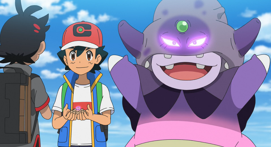 Nachdem sich alle sattgegessen haben, wandern die Kronen von Ashs und Gohs Köpfen wieder zu Galar-Laschoking und Laschoking zurück.