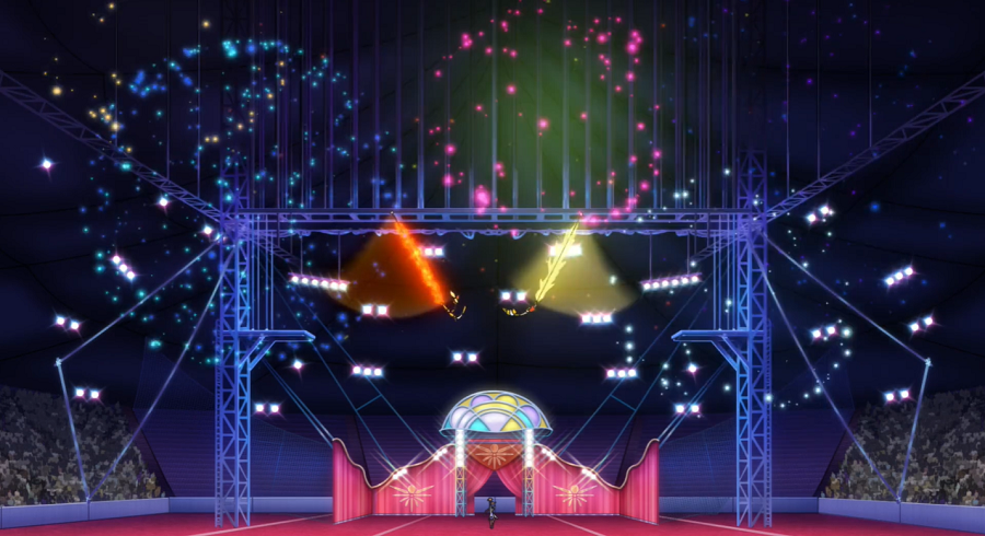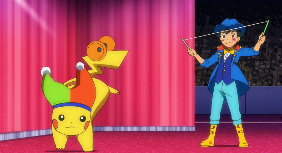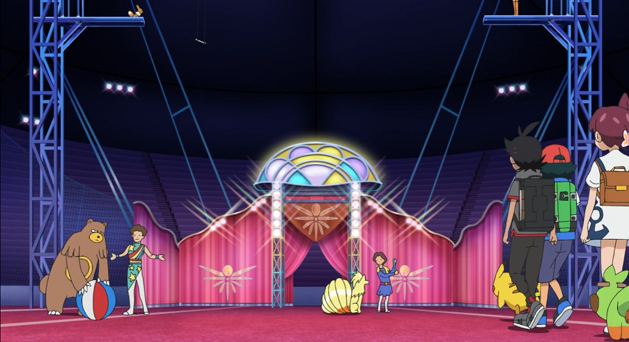 Der Tag der Zirkusshow ist gekommen. Unter den Zuschauern befinden sich auch Professor Kirsch, Christin und René. Eröffnet wird die Show nach der Begrüßung durch den Zirkusdirektor von Ash und Goh, die gemeinsam mit Pikachu und Chimpep einen – anders noch als in ihren Proben – sehr gelungenen und viel beklatschten Auftakt hinlegen.