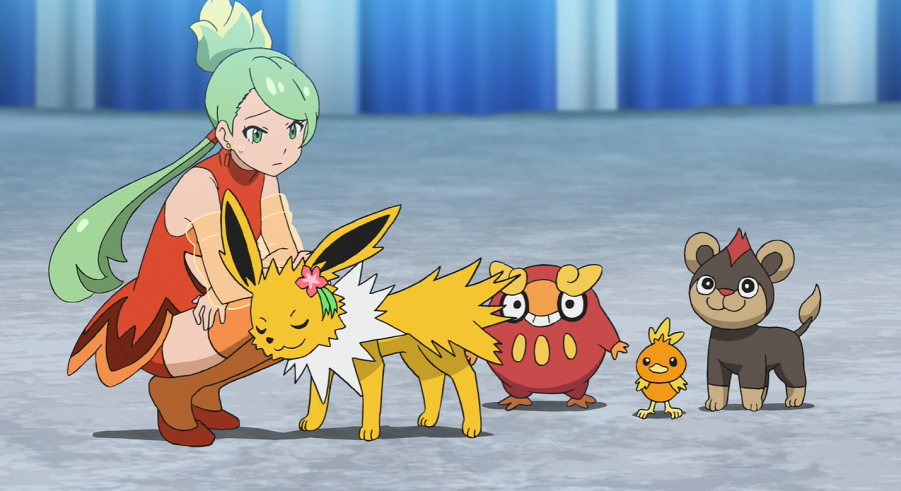 Am nächsten Morgen bereitet Harmony ihr aus Flemmli, Flampion und Leufeo bestehendes Feuer-Pokémon-Team auf dessen Auftritt vor. Als die Pokémon mit ihren Feuer-Attacken eine Zielscheibe beschießen, bemerkt Harmony auf einmal eine eingesetzte Elektro-Attacke und stellt fest, dass ihr Blitza aufgetaucht ist, das sich nun an sie anschmiegt.