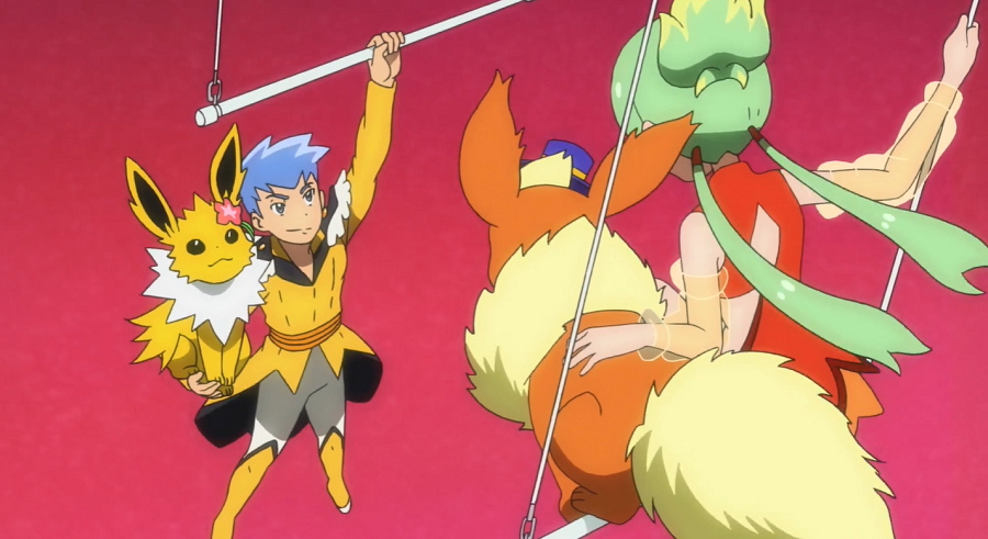 Ash und Goh schauen Pikachu und Chimpep beim Spielen zu, während sie auf Chloe warten. Gemeinsam wollen sie einen Pokémon-Zirkus besuchen, der auf seinen Plakaten mit Blitza und Flamara wirbt und für sehr beliebte und spektakuläre Darbietungen von Pokémon und deren Partner bekannt ist. Ash und Goh sind dabei in einer Lotterie als besondere Gäste für die stattfindende Show ausgewählt worden, die dort auch einen kleinen Auftritt haben sollen. Mit etwas Verspätung erreicht Chloe gemeinsam mit Evoli den Treffpunkt.
