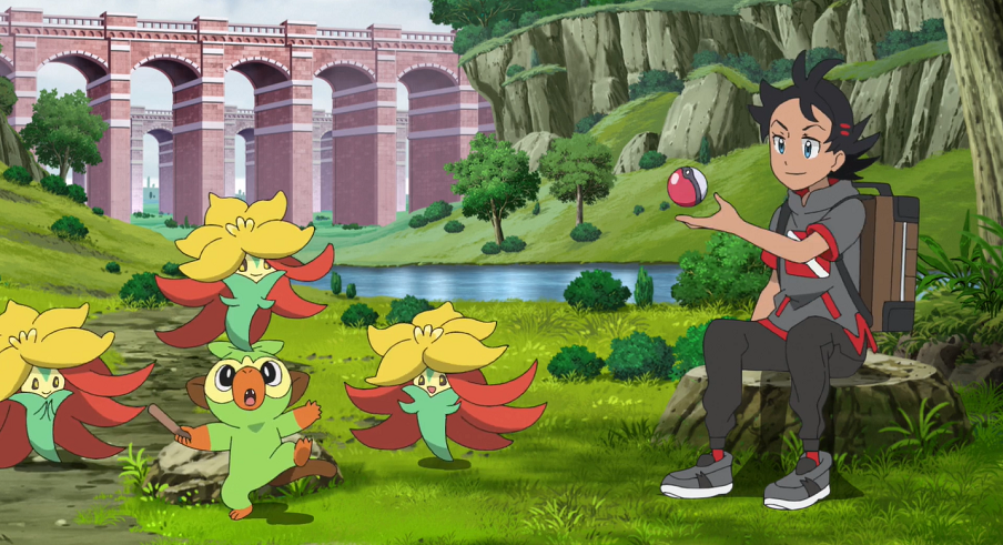 Goh wartet derweil am Engine-Flussufer auf Ash. Dabei beobachtet er, wie sein Chimpep freudig mit einigen Cottini spielt. Er nutzt die Gelegenheit und kann eines der Cottini fangen.