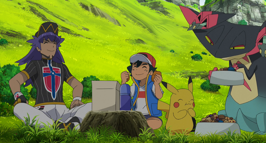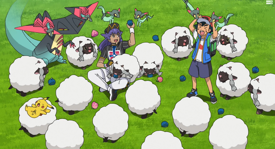 Nachdem Ash, Pikachu, Delion und dessen Katapuldra mit den Wolly und Grolldra viel Spaß gehabt haben, gönnen sie sich ein gemeinsames Picknick. Ash ist ganz erstaunt, als Delion ihm erklärt, dass er dies auch als Training ansieht und dass Kämpfen, Trainieren und Spaßhaben für ihn dasselbe, nämlich Erfahrungen mit Pokémon, sind.