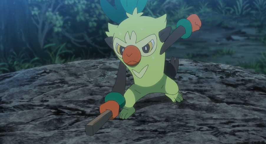 Ash, Goh und Pikachu nehmen sofort die Verfolgung auf. Als sie die Pflanzen-Pokémon finden, können sie beobachten, wie Chimstix Chimpep zeigt, wie es mit Hilfe seines Schlägels Nüsse öffnen kann. Chimpep passt für seine Verhältnisse ungewöhnlich konzentriert auf und versucht sich selbst darin, scheitert jedoch. Gemeinsam teilen sich beide die von Chimstix geöffnete Nuss.