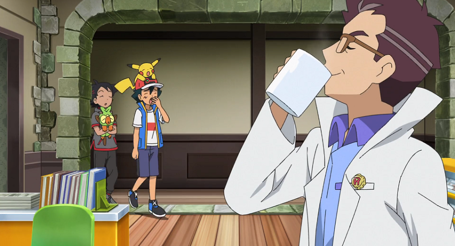 Am Morgen nach der Show betreten Ash und Goh den Frühstücksraum im Labor, wo sie auf Professor Kirsch treffen. An dessen Laborkittel hat dieser ein Kronkorkenabzeichen von Team Rockets Radioshow angebracht. Auch René stößt dazu und bemerkt das Abzeichen am Laborkittel des Professors. So kann er natürlich sofort auf die Sendung zu sprechen kommen und die beiden erzählen sich, wie sie auf diese gestoßen sind. Als René Professor Kirsch seinen gewonnen Premierball zeigt, ist dieser sehr erstaunt. Er kontert jedoch, indem er seinen Laborkittel öffnet. An dessen Innenseite sowie auf seinem Hemd sind zahlreiche weitere Abzeichen angebracht, die René signalisieren, dass Professor Kirsch derjenige Zuhörer ist, dessen Einsender ihn dazu inspiriert hat, ebenfalls eine Einsendung zu schreiben. Ash, Goh, Pikachu und Chimpep verstehen alle nur Bahnhof. Da Professor Kirsch und René jedoch glücklich scheinen, ist es ihnen egal.