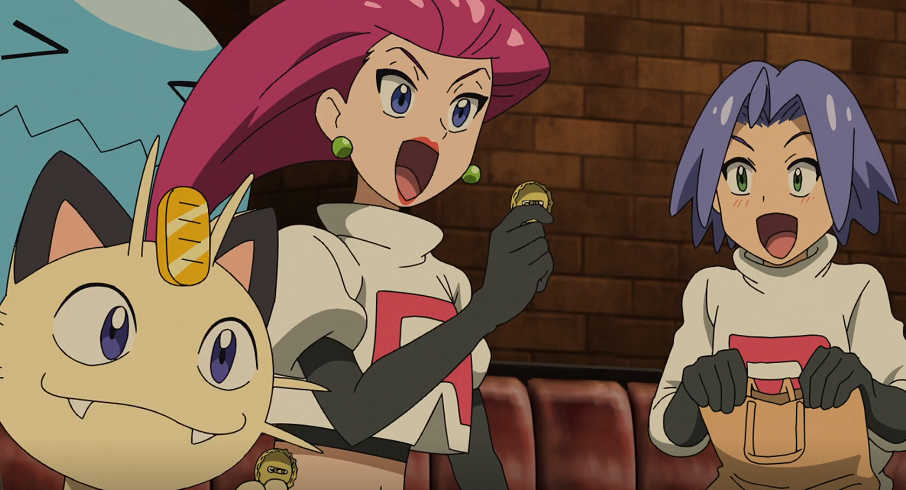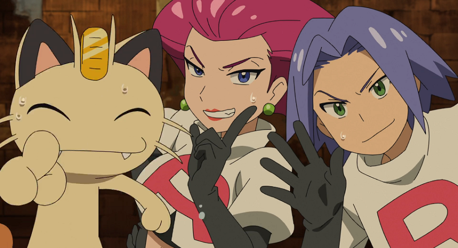 Ash, Goh, James, Jessie, Nio, Officer Rocky, Professor Kirsch, René, Rocko, Schwester Joy