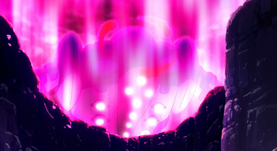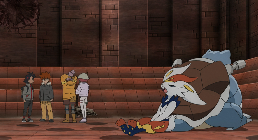 Als Goh und Gary zusammen mit Layla und Steffen die Zwiespaltruinen wieder verlassen, werden sie am Eingang bereits von der inzwischen dazu gestoßenen Danika sowie Quentin erwartet. Sie sind erstaunt, dass Goh und Gary sowohl Regieleki als auch Regidrago gefangen haben. Als sie diese gemeinsam mit Regirock, Regice und Registeel betrachten, beginnen die Legendären Pokémon rötlich zu leuchten. Hinter der Felswand, vor der sie stehen, ist zu sehen, wie eine ebenso rötliche Lichtsäule zum Himmel aufsteigt, die immer breiter wird. In dieser erscheint ein dynamaximiertes Regigigas. Keiner weiß so recht, was dies bedeuten soll.
