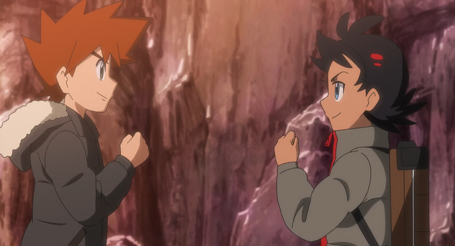 Überglücklich ruft Goh Ash an, der gerade mit seinen vom Training völlig erschöpften Pokémon im Kirsch-Park ist, wo er die freudige Nachricht hört und sich riesig für ihn zu freuen beginnt. Goh bedankt sich bei Ash für seine Hilfe.