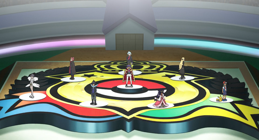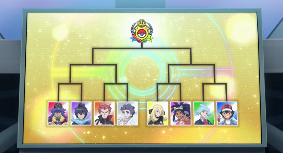 Dann ist es soweit: Der Stadionsprecher beginnt die Show. Er stellt dem Ranking folgend nacheinander die Teilnehmenden vor, die daraufhin jeweils auf die Bühne kommen. Nach Ash folgen Iris, Alain, Diantha, Siegfried, Troy Trumm, Cynthia sowie Delion. Der Jubel der Zuschauer:innen ist groß. Der Stadionsprecher kündigt an, dass der unbesiegte Delion, der aktuell amtierender Monarch ist und damit als stärkster Trainer der Welt gilt, ebenfalls mit allen anderen Teilnehmenden in der ersten Runde starten wird. Nachdem Delion eine kurze Kampfansage an seine Herausforder:innen gerichtet hat, verkündet der Stadionsprecher die Paarungen der ersten Runde. In dieser tritt Delion gegen den Sieger der Kalos-Liga, Alain, an. Des Weiteren treffen Diantha und Siegfried sowie Cynthia und Lilia aufeinander. In der letzten Paarung kämpft dann Ash gegen Troy um den verbleibenden Platz im Halbfinale. Troy freut sich, endlich einmal gegen Ash antreten zu können.
