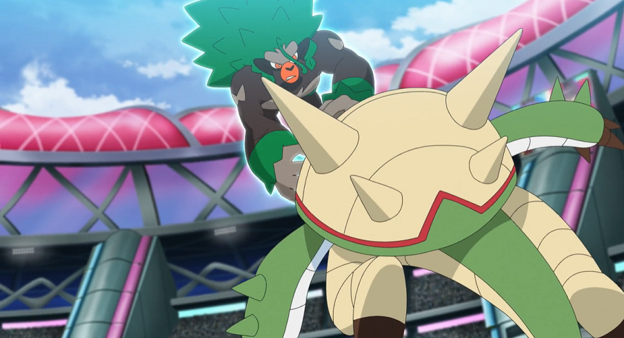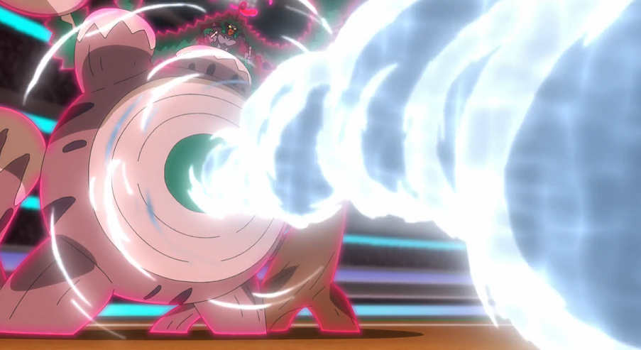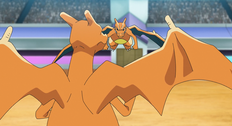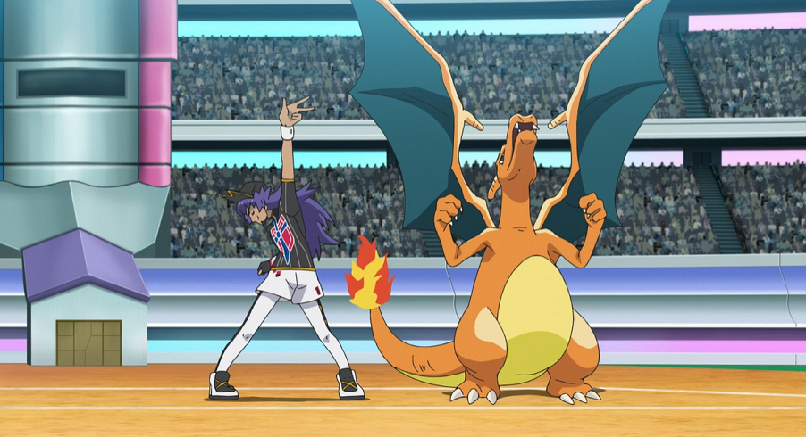 Alain entscheidet sich daraufhin für Glurak als nächstes Pokémon. Ash und Pikachu auf der Tribüne freuen sich, Alains Glurak, gegen das sie selbst bereits einige Male gekämpft haben, in Aktion sehen zu können. Gortrom setzt Trommelschläge ein, doch Alains Glurak kann der Attacke mit Flammenblitz ausweichen und macht mit Gortrom kurzen Prozess.
