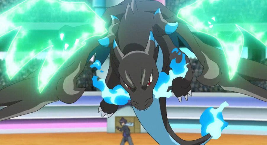 Alain schickt sein Glurak als letztes, ihm noch verbleibendes Pokémon in den Kampf. Er erklärt gegenüber Delion, dass es sein Traum sei, mit seinem Glurak gegen Delions Glurak anzutreten. Mit Hilfe des Schlüssel-Steins in dem Mega-Ring an seinem Arm mega-entwickelt er sein Glurak zu Mega-Glurak X. Dieses attackiert sogleich mit Drachenklaue. Delions Glurak setzt dem Angriff Antik-Kraft entgegen. Durch die Steine, die auf Mega-Glurak X zufliegen und die es auf dem Weg zerstören muss, wird Alains Pokémon immer wieder abgebremst. Im anschließenden Nahkampf kann Delions Glurak Alains Glurak wegstoßen. Alains Mega-Glurak X greift daraufhin mit Flammenblitz an. Doch Delions Glurak kann mit Drachenpuls seinen Gegner rechtzeitig, bevor es selbst erwischt wird, treffen und durch den sehr effektiven Treffer auch besiegen.