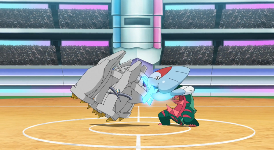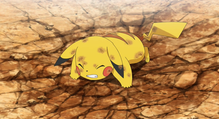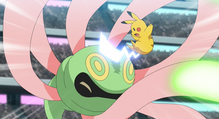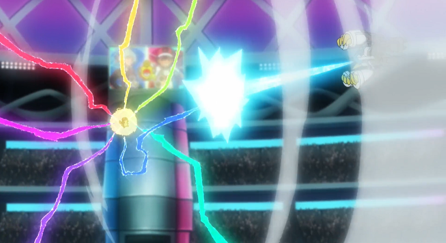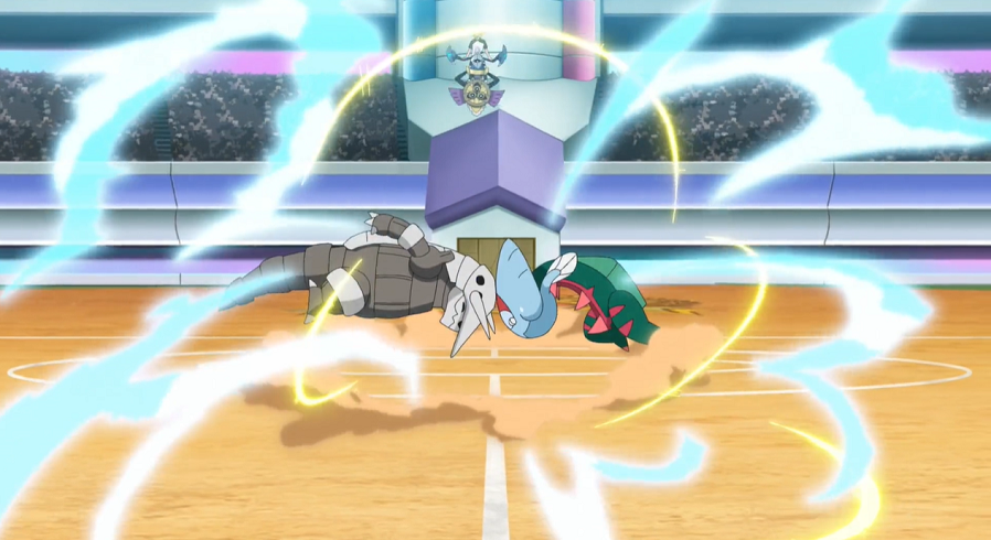 Pikachu ist angeschlagen, kann aber weiterkämpfen. Auf Anweisung von Ash versucht es, Mega-Metagross mit Eisenschweif zu treffen. Jedoch ist dieses wieder vorbereitet, verschwindet im richtigen Moment, um wieder hinter Pikachu aufzutauchen und es mit Psychokinese durch die Luft zu schleudern und schließlich hart auf den Boden aufprallen zu lassen.