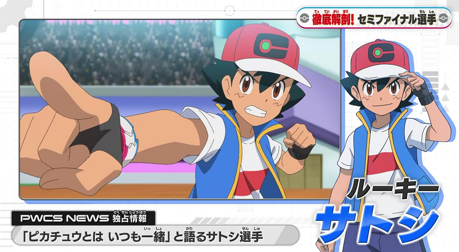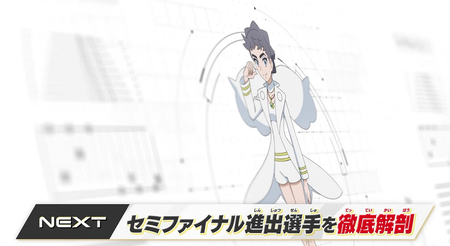 Eine News-Sendung rund um die Pokémon-Krönungs-Weltmeisterschaften bietet kurz vor den anstehenden Halbfinals zwischen Diantha und Delion sowie Ash und Cynthia einen Rückblick auf die bisherigen Kämpfe sowie die Informationen zu den Teilnehmenden.
