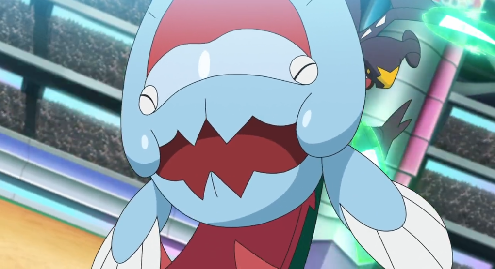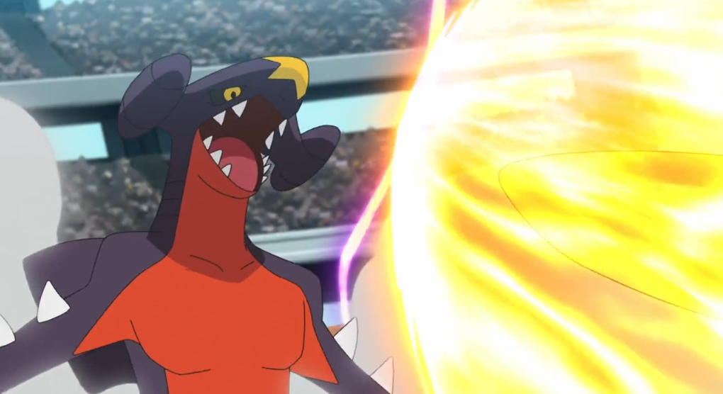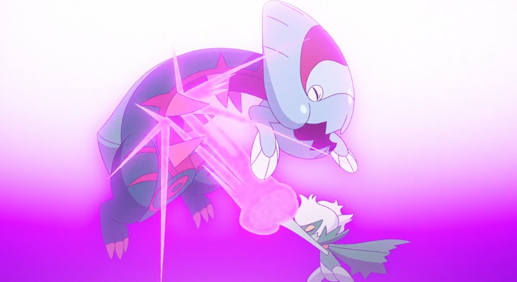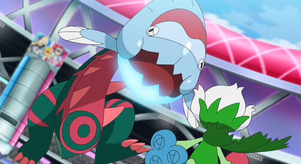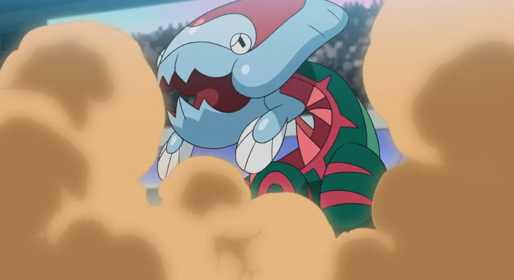 Der Kampf geht weiter. Während Ash sein Pescragon in den Kampf schickt, ruft Cynthia ihr Knakrack aus dem Pokéball. Ash wundert sich bei diesem neuen Gegner, ob seine Gegnerin nun die Mega-Entwicklung einsetzen wird, doch Cynthia lässt sich nicht in die Karten gucken und lächelt versteckt. Sie scheint einen Plan zu haben.