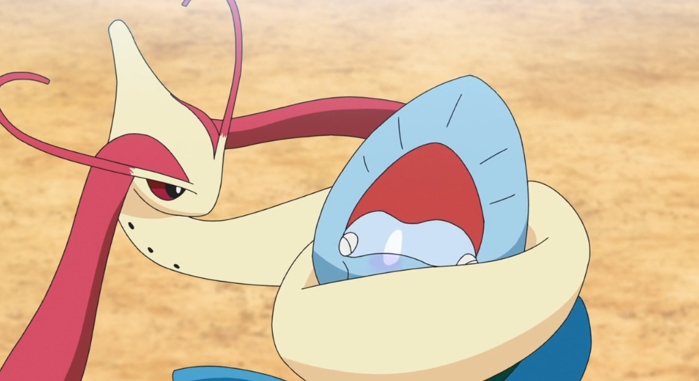 Cynthia erkennt an, dass Ash auf die Gefühle seiner Pokémon achtet, jedoch schließt sie daraus auch, dass genau diese Entscheidung ihr eine Chance auf den Sieg geben könnte. Sie ruft daraufhin ihr Milotic auf das Kampffeld.
