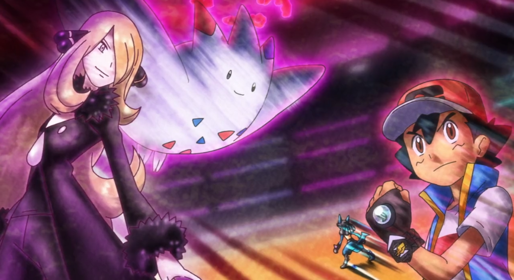 Bevor Ash sein letztes Pokémon einsetzen kann, ruft Cynthia ihr Knackrack zum Verwundern von Ash zurück. Ash ruft nun mit Lucario sein letztes Pokémon auf das Kampffeld, welches durch Gohs Liberlo auf den Zuschauerrängen angefeuert wird. Beide, Ash und Lucario, beschließen Lucario stolz zu machen. Cynthia setzt nun ihr Togekiss ein, welches direkt von Lucario mit Patronenhieb angegriffen wird.