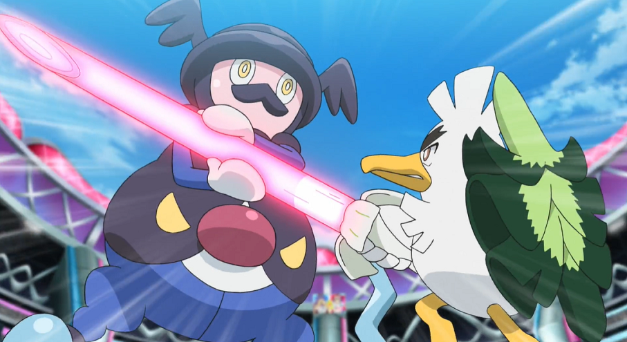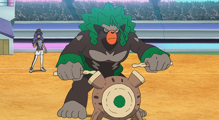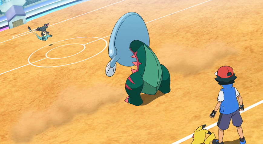 Delion gratuliert Ash, erinnert ihn aber daran, dass alle vier verbleibenden Pokémon von Ash bereits Schaden genommen haben und eine gewisse Erschöpfung aufweisen. Mit Gortrom schickt er sein nächstes Pokémon aufs Feld.