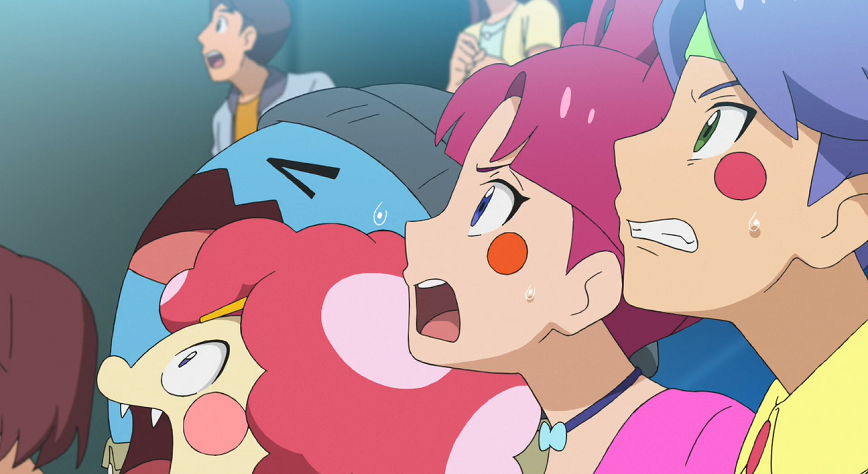 Delion scheint unbesorgt über den weiteren Kampfverlauf, während Chloe, Lucia wie auch Team Rocket auf der Tribüne Ash weiter anfeuern.