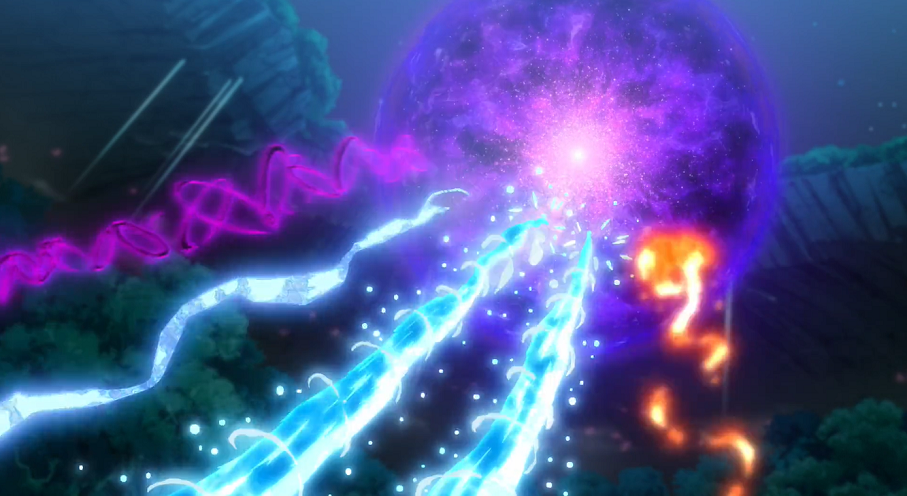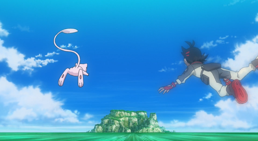 Das Leuchten wird immer stärker und Goh findet sich auf einmal in einem schwarzen Raum wieder, in dem er mit ansehen kann, wie das Universum entsteht und sich die Erde zu ihrer heutigen Form entwickelt. Plötzlich taucht hinter ihm ein Rayquaza auf, das so dicht an ihm vorbeifliegt, dass er von dem Windzug auf die Erde hinabstürzt. Dort landet er im Meer, wo er verschiedene, dort lebende Fossil-Pokémon beobachten kann. Ein Leuchten lässt ihn wieder auftauchen. Mew schwebt vor der Sonne, lächelt und macht sich, gefolgt von Goh, auf in Richtung Ferneiland. Dort angekommen verschwindet Mew und Goh fällt in die Tiefe und beginnt laut zu schreien.