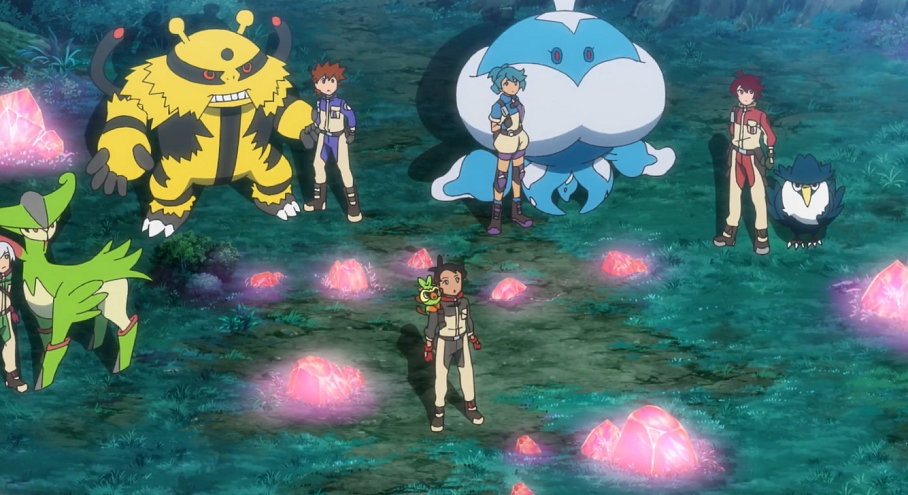 Im selben Augenblick ist Professor Amarants Stimme aus einem Funkgerät zu hören. Danika bestätigt ihm, ihn hören zu können. Die Gruppe freut sich, dass ihre technischen Geräte und auch Pokébälle wieder funktionieren. Der Professor berichtet ebenfalls davon, dass der Sensor, der Mew anhand dessen Psycho-Energie aufspüren soll, reagiert. Durch die an ihrer Ausrüstung angebrachten Kameras kann dieser das Geschehen direkt verfolgen.