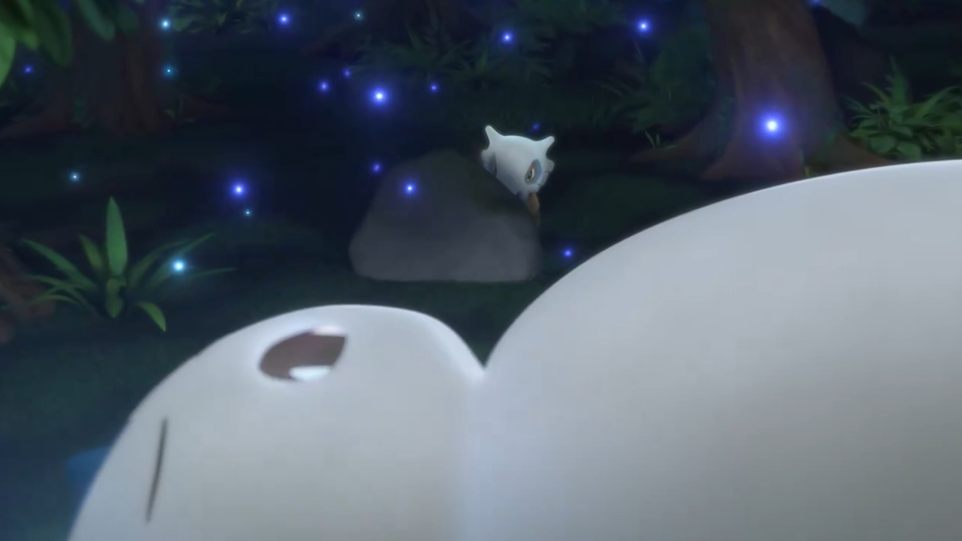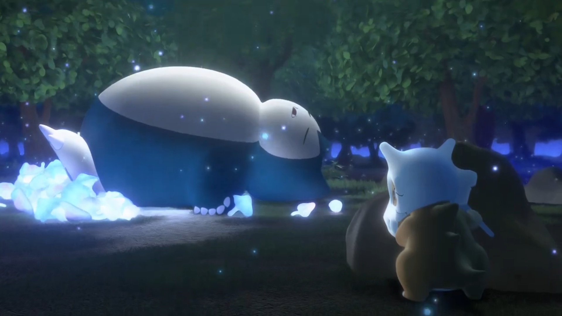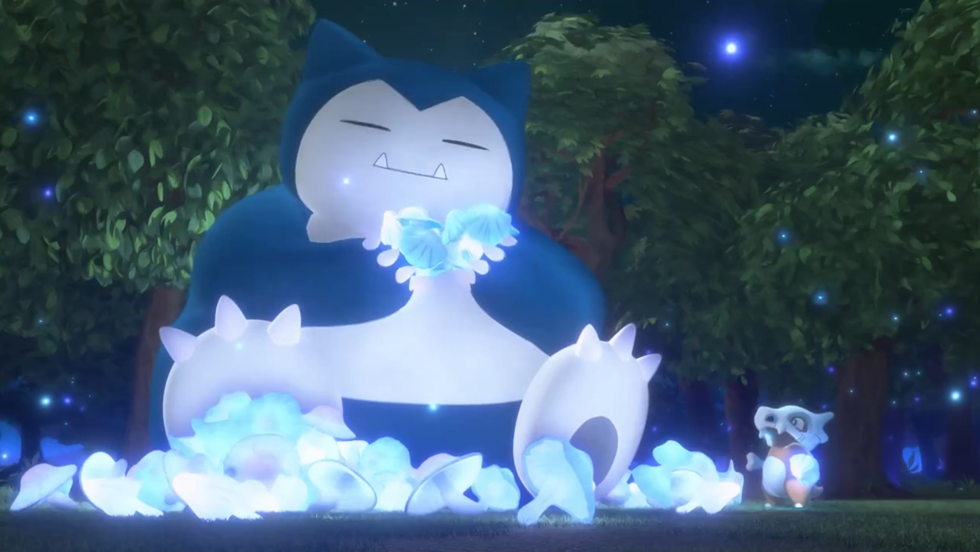 Inmitten eines Waldes blickt Tragosso zum Vollmond empor und weint dabei. Plötzlich leuchten die Pilze um es herum blau auf und führen es zu einem Relaxo. Dieses kümmert sich um einen großen Berg des Essens, bis einer der Pilze in Tragossos Richtung rollt. Das große Pokémon greift danach und Tragosso robbt voller Panik hinter einen kleinen Felsen, um die Situation zu beobachten. Nachdem Relaxo aber auch diesen verspeist hat, legt es sich schlafen.