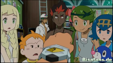 Kiawe erzählt dabei, dass er seinen Z-Ring vom Inselkönig von Akala nach der dortigen Prüfung erhalten habe