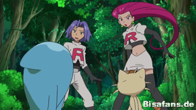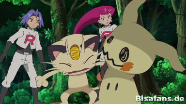 Pokémon, die nur in Alola auftauchen. Aus dem Gebüsch taucht erneut Mimigma auf und stellt sich Team Rocket in den Weg.