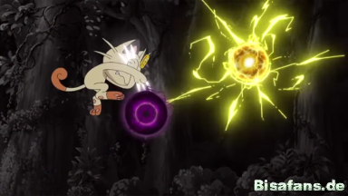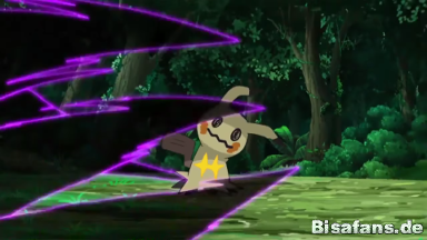 Pikachu setzt Elektroball auf Mauzi ein, jedoch wird dieses von Mimigma mittels Spukball beschützt. Da es Pikachu hasst,