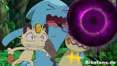 die von Nebulak, Alpollo und Gengar kreiert wurden und plötzlich fällt Mauzi in ein schwarzes Loch.