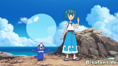 Kiawe ist bisher erfolglos und meint, ihm liegen Feuer-Typen ohnehin mehr als Wasser-Typen, und Chrys hat seine